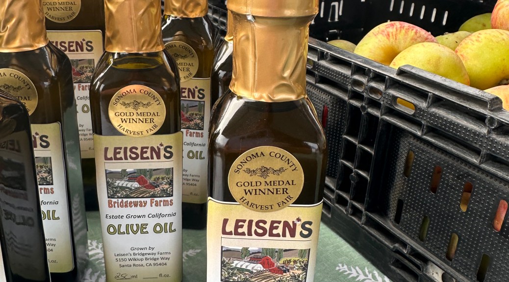 Our Olio Nuovo (New oil) was harvested in early November and is ready for bottling. It has been tested by a local firm to confirm it qualifies as Extra Virgin and has tested high in polyphenols, the substance that gives olive oil it’s health benefits and helps to keep it from deteriorating in storage. Delicious, pungent oil from hand harvested olives. Look for announcements about availability soon.